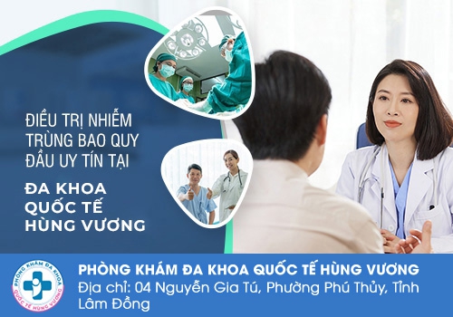 Khi nói vấn đề điều trị bệnh nam khoa tại Bình Thuận, chúng ta không thể nào không kể đến Phòng Khám Đa Khoa Quốc Tế Hùng Vương – Tọa lạc tại 4 Nguyễn Gia Tú, P. Phú Thuỷ, Tỉnh Lâm Đồng. Là phòng khám được xây dựng dựa trên nền tảng y khoa chất lượng và dịch vụ y tế hiện đại, bệnh nhiễm trùng bao quy đầu sẽ được điều trị triệt để bởi những phương pháp điều trị mới như: